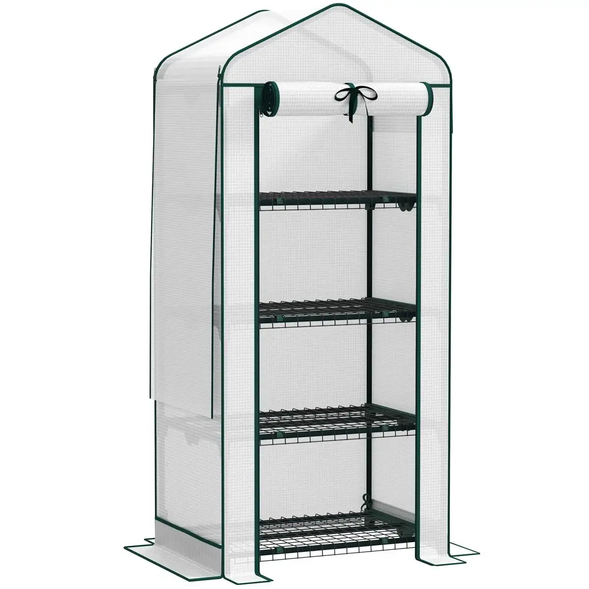 ● Four-tier Plant Shelf: Equipped with wire shelves, this small greenhouse for outdoors provides ample space for organizing flower pots, seed trays, and more, enhancing your gardening efficiency